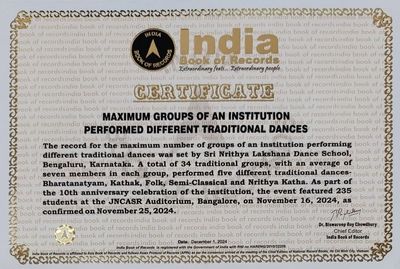 Participant of Guinness World Record Event for the Largest Bharatanatyam Performance in 2017.